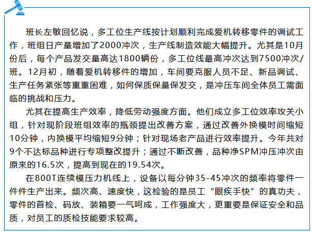 用奉獻和堅守詮釋優秀團隊的魅力——東風模沖公司沖焊工廠沖壓車間全員奮戰保發交